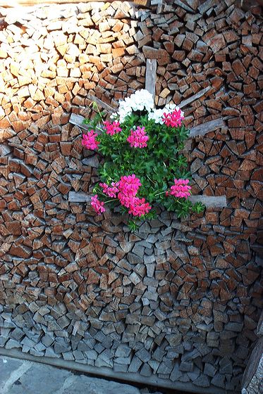 Switzerland is full of meticulously piled firewood stacks. This one in Wengen takes things to new extremes, with a flower planter built right in. 7/15/04 6:47:32 PM